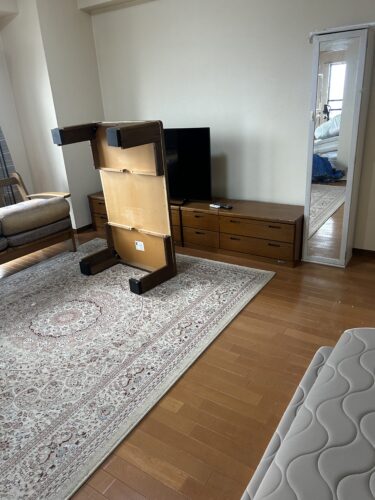 作業も手早く丁寧に対応して頂けました。今回は婚礼タンス、ロフトベッド、机に本棚の処分依頼でした。